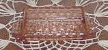 To the left are some of the pieces from the dinnerware set; the dinner plate, cup and saucer. There is also a salad plate that's slightly smaller than the dinner plate. I bought the dinner plates by the dozen new in the mid 1990's, mail order from Sears. The dinner plates are marked Arcoroc, a number and France, and are 8 3/4 inches across. The salad plate is 7 3/4 inches. The saucer is marked Arcoroc France and has a number. It's 5 1/2 inches across. The cup is 2 1/2 inches tall and 3 1/2 inches across the top. It's marked Arcoroc France also and has a number.
