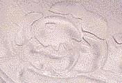 The rose and leaves in this pattern are smooth and clear, while the other areas are textured, like the Vereco plates. There's a close up of the rose below. The edges of the bowls are scalloped. The bowls are about 6 1/4 inches across and about 2 inches high. The mugs are about 4 inches tall.