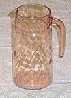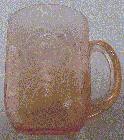 Often you can find surprises in unusual places when collecting pink glass. The bowl, shown to the right, is a really pretty one and the newest of the pieces shown here. I found these in a warehouse grocery store for $1.00 a piece in 1999. I have often wished I had bought more of the other pieces of glass that I purchased new in the 80's and early 90's. I made sure I didn't make the same mistake with these and bought 2 dozen of the bowls. We use them everyday with the Pink Swirl dishes. The Pink Swirl bowls are too small for my families appetites. These bowls are marked Indonesia and are 2 1/4 inches tall and 6 3/4 inches across. They have a pretty clear rose design on the bottom of the bowl. The sides are textured. With a husband and 4 boys, I've already lost a few of these rose bowls.